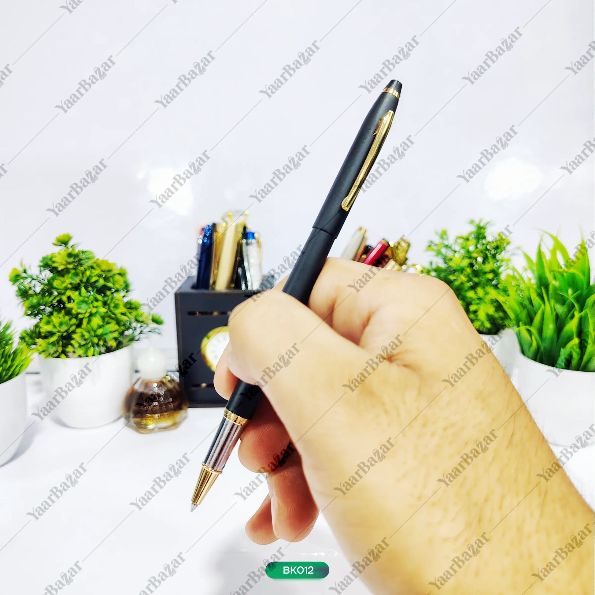 The Executive Noir Pen blends modern minimalism with professional elegance. Its matte black finish contrasts beautifully with a polished chrome tip and golden clip, creating a balanced and bold writing tool. Ideal for entrepreneurs, professionals, or those who value understated class.