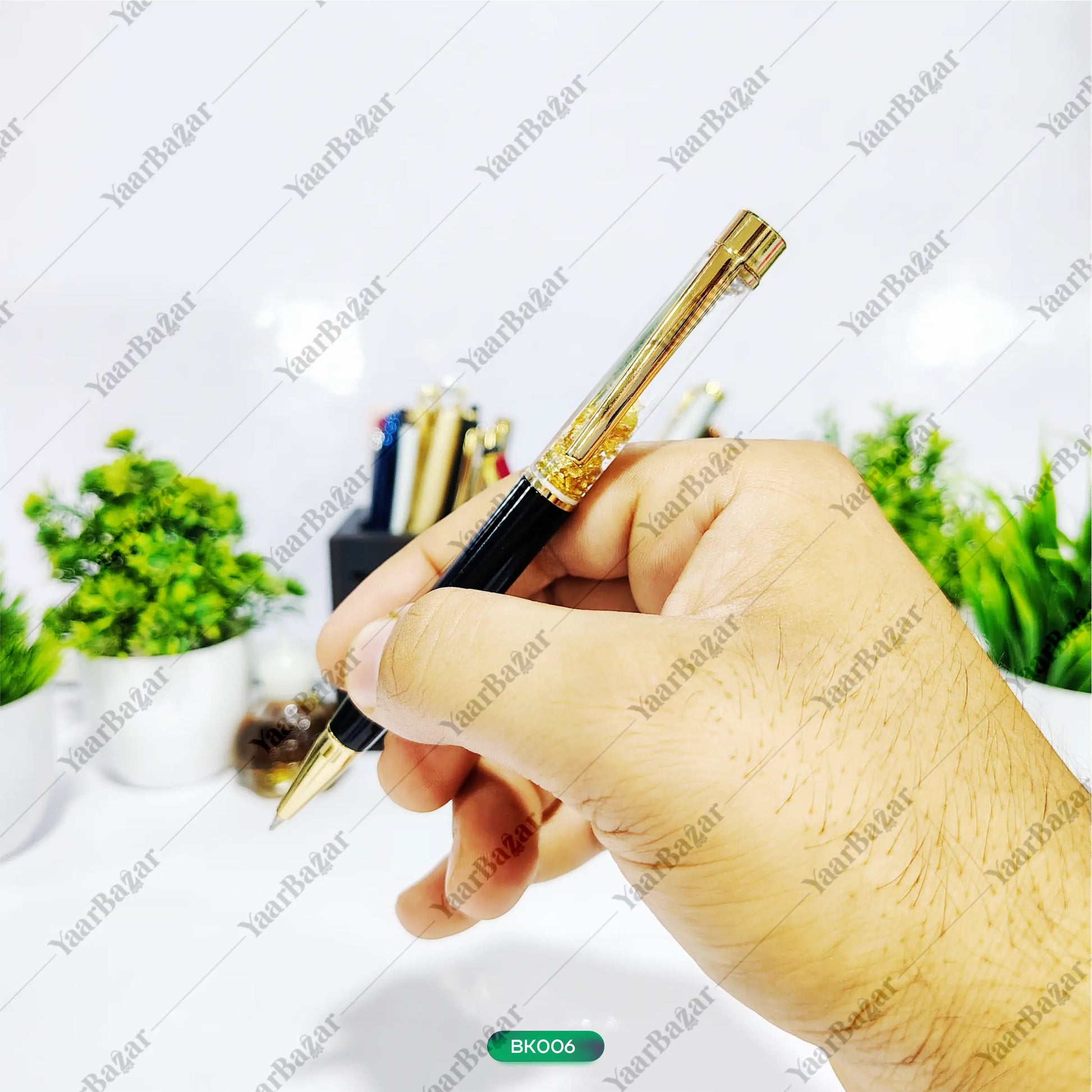 Turn your handwriting into a statement with the GoldFlake Crystal Pen. Designed with a glossy royal blue body and a transparent top chamber filled with shimmering gold flakes, this pen combines luxury with motion. Ideal for collectors, writers, or anyone who loves a little sparkle in their daily routine.