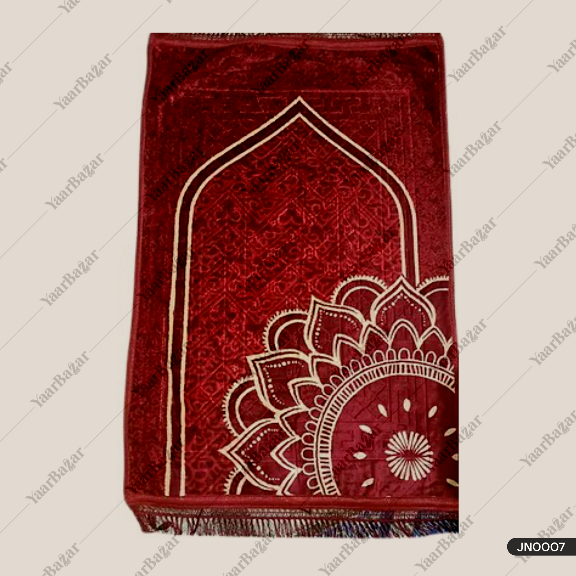 This Velvet Prayer Rug (Musalla Mat) with a classic square design offers a soft, luxurious feel for a peaceful prayer experience. Its thick velvet texture provides extra comfort and durability, making it ideal for daily use at home or in the mosque.